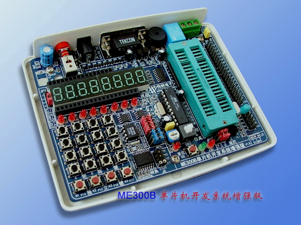 ME500是一款具有实验仪、编程器、仿真器、ISP下载线四种功能合一的单片机综合学习开发系统,系统自带控制CPU,配合拥有自主知识版权的编程软件,可以支持51系列,AVR系列,PIC系列三种单片机的实验和开发。您只需一套ME500单片机开发系统和一台电脑而不需要购买编程器等其它任何设备即可轻松学习和开发51系列、AVR系列、PIC系列三种单片机。ME500既适合初学者学习单片机的需求,同时开发系统的编程功能、对用户目标板的仿真功能和ISP下载功能也适合开发人员开发单片机产品使用。